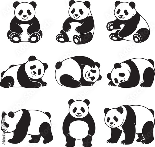 Panda Bundle Vector – Cute and Wild Panda Silhouette Collection Panda Head and Full Body Vector Bundle – Cartoon and Wildlife Design Panda Silhouette Bundle – Animal Clipart Set for Logo, Art, and D