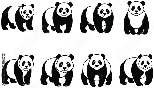 Panda vector shilhouette bundle. Panda vector set icon.