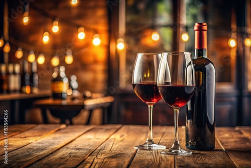 Panoramic Close-up: Red Wine Bottle & Glasses on Restaurant Table