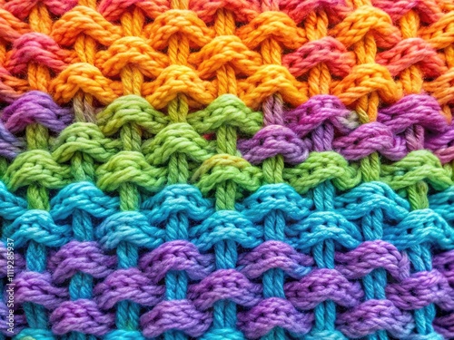 Panoramic Crochet Pattern: Simple Knitting Stitch Openwork Mesh Very Peri Fabric Background - High-Resolution Image