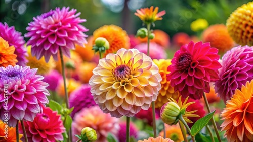 Panoramic Dahlia Blooms: Vibrant Colorful Dahlia Flower Arrangement Photography