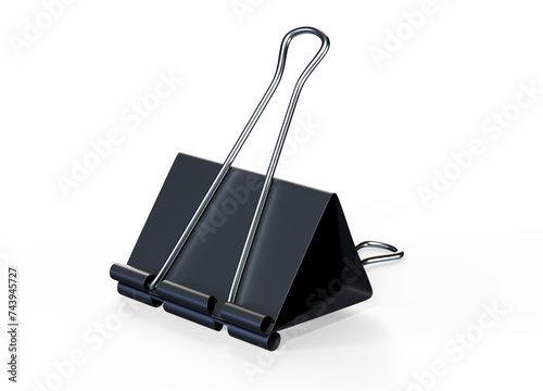 Panoramic shot of stacks of blank paper with metal binder clips on table 3d render