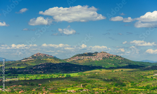 Panoramic view of Montecelio and Sant'Angelo Romano from Tivoli, two ancient towns in Rome countryside