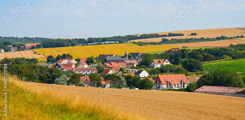 agriculture, architecture, blue skies, church, countryside, farmland, france, harvest, hill, holiday, house, landscape, maritime, meadow, nature, outdoors, panorama, pas de calais, peaceful, picturesque, quiet, remote, rural, scenic, serene, church steeple, summer, sunny, tour tourism, travel, vacation, vale, village, wheatfield
