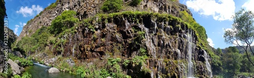 Panoramic view on Dashbashi Canyon, Khrami river and Waterfall in Tsalka region, Georgia