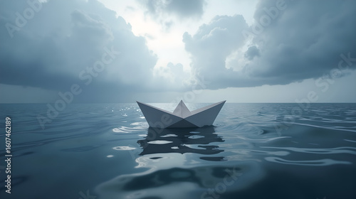paper, boat, cloudy, sky, water, origami, folded, minimal, nature, scene, surface, peaceful, travel, concept, creative, idea, object, landscape, hand-made, journey, symbolic, calm, unique, art, design, still