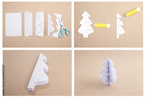 paper Christmas tree decoration craft, tutorial, step by step instruction, single pine