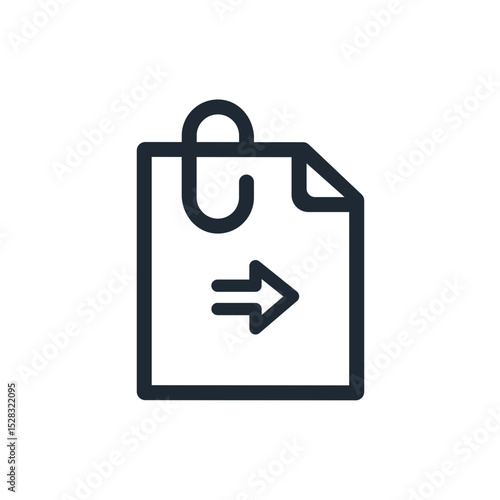 Paper document with a paperclip and an arrow pointing to the right in a simple line art style