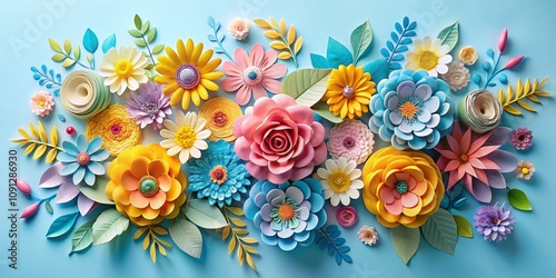 Paper Flower Arrangement on Blue Background, Paper Craft, Floral Design ,paper flower, craft