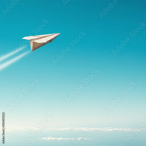 paper plane flying in the clear blue sky origami airplane in the air copy space with text