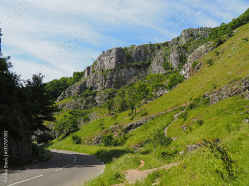 road, mountain, landscape, sky, highway, travel, nature, summer, cloud, curve, hill, rock, route, view, green, scenery, rural, winding, cheddar, gorge, england