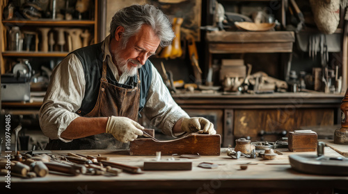craftsman, restoration, workbench, workshop, vintage, tool, carpenter's shop, artisan, craftsmanship, passion, skill, dedication, sharpened, expertise, careful, detailed, traditional, authentic, retro, manual, hobby, industry, craft, precision, artistry, technique, design, process, leather, glove, senior, experienced, creative, handcraft, handiwork, skilful, meticulous, equipment, workspace, historic