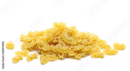 Pasta cornetti creste macaroni pile isolated on white background