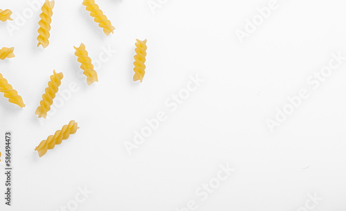 Pasta products in the form of a spiral, texture, on a white background