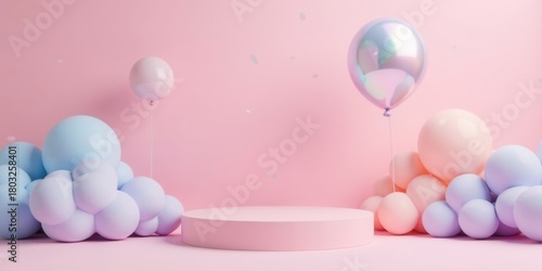 balloon, pastel, pink, blue, purple, celebration, party, festive, display, pedestal, platform, product, background, minimal, simple, elegant, sweet, airy, light, soft, colourful, decoration