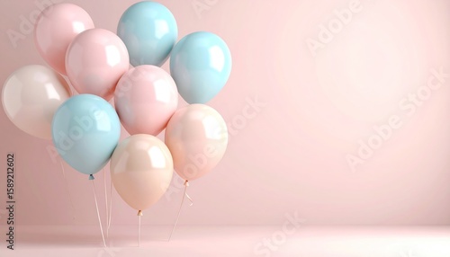 Pastel Balloons Floating Against a Pink Studio Background with Soft Lighting