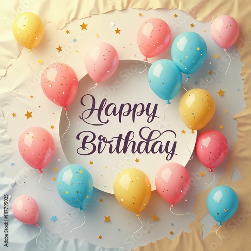 happy birthday, birthday card, pastel, balloon, vector, graphic, cursive, greeting, gold, gradient, background, pink, blue, yellow, colourful, swirling, rounded, elegant, soft, texture, paper, fold, celebration, party, invitation, design, card, template, illustration, festive, joyful, cheerful, bright, happy, birthday, greeting card, gold background