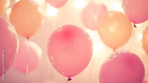 Pastel birthday celebration with balloons and confetti festive party background soft lighting joyful vibe