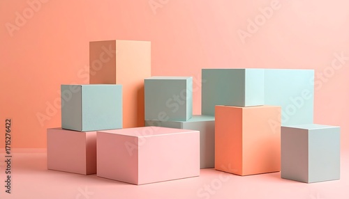 pastel, cube, geometric, arrangement, display, peach, background, colours, soft, abstract, minimalist, solid, stack, composition, shape, studio, three-dimensional, modern, simple, empty, product, minimal, orange, light, muted