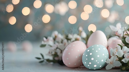 Pastel easter concept. Pastel Easter eggs adorned with flowers create a festive spring atmosphere.