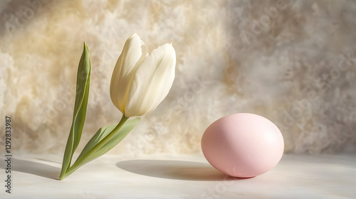 pastel, easter, egg, resting, soft, linen, clothes, shadow, creating, calming, minimal, atmosphere