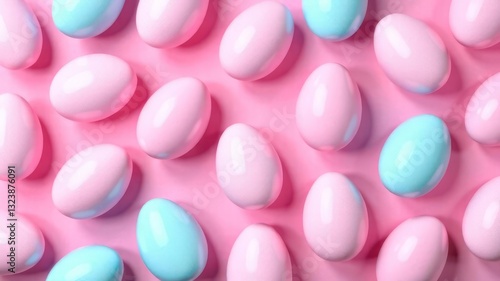pastel pink and blue eggs arranged on pink background create vibrant modern pattern. easter celebration. spring holiday theme. decorative element for print design, social media.
