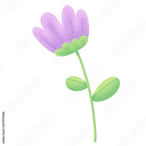 Pastel Purple Flower: Simple, Hand-Drawn Style with Green Stem and Leaves.