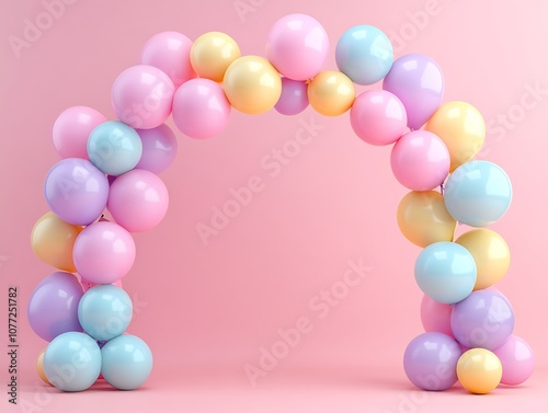 Pastel-colored Balloons Forming an Archway on Pink Background