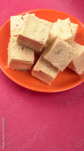 Patisa / Soan Papdi is a popular Indian cube shape flaky/crispy dessert.