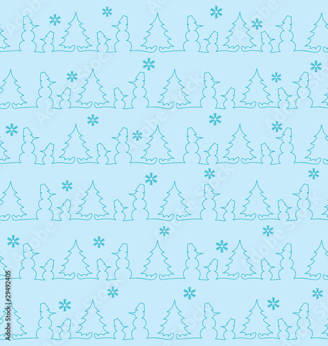 Pattern with snowmen and furtrees