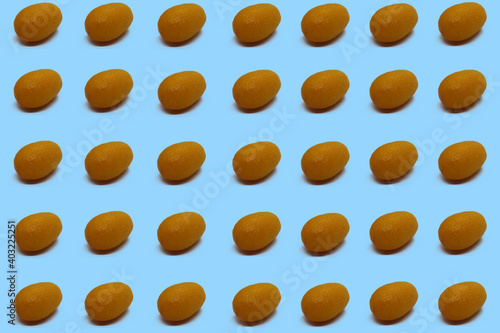 paw prints, kumquats fruits, kumquat fruit on isolated green background or surface