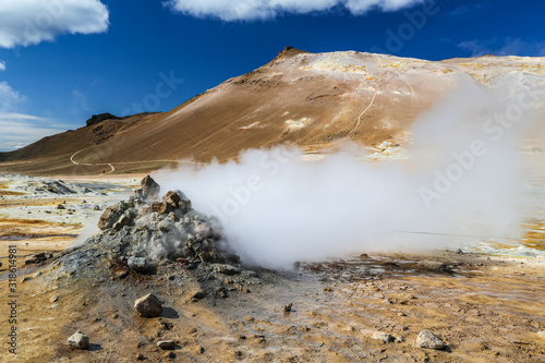 mountain, landscape, nature, heaven, iceland, lake, geothermal, geothermal energy, energy, volcano, volcanic, cloud, blue, travel, water, steam, rock, hot, desert, sulfur, peak, snow, spring, scenic, smoke, iceland, icelandic, fumarole, heat