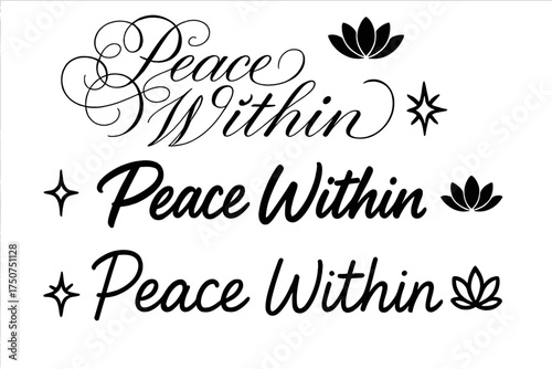 peace, within, calligraphy, create, lettering, illustration, phrase, render, variation, copperplate, with, elegant, flourishes, modern, brush, script, serene, flowing, energy, minimalist, clean, clarity