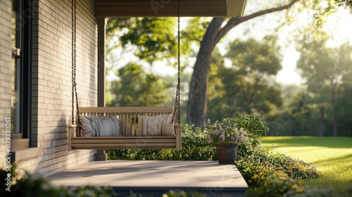 Peaceful porch swing on a sunny day.