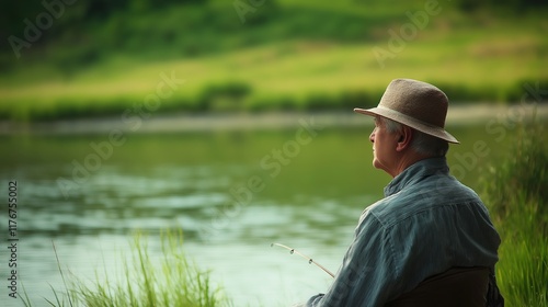 fishing, river, senior, man, nature, peaceful, leisure, recreation, calmness, water, greenery, summer, hobby, landscape, sitting, solitude, calm, grass, hat, natural, relaxed, quiet, old, portrait, activity, lifestyle, serene, moment, rod, scenic, therapy, blue, harmony, copy, space, copy space, copy space, background