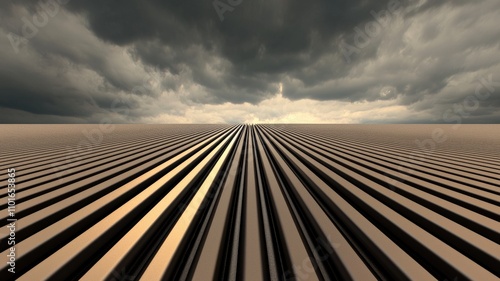 peak energy demand concept. A surreal landscape featuring striped patterns extending toward a cloudy horizon, evoking a sense of depth and mystery.