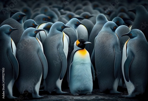 penguin, unique, group, background, assertive, offbeat, extraordinary, illustration, social, ecosystem, abstract, sea, family, polar, unconventional, individual, distinct, exceptional, species, quirky, independent, bird, conspicuous, penguin, different, feather, rare, copy space, curious, composition, beak, special, gull, standing out, habitat, ice, odd, north, playful, remarkable, nonconformist, generative, ai