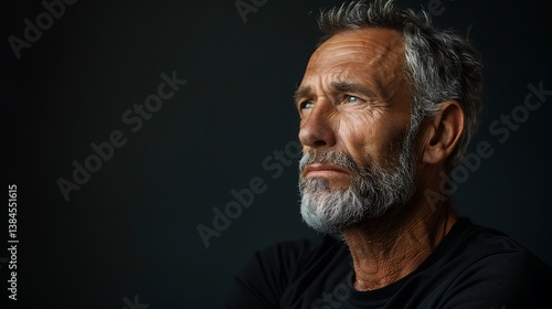 Pensive mature man with grey beard thoughtful gaze portrait A contemplative older gentleman looking away