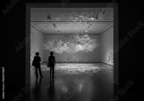 art, installation, museum, gallery, exhibit, light, shadow, silhouette, person, visitor, room, wall, floor, entrance, doorway