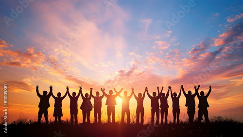 landscape, sunrise, success, team, silhouette, group, hand, friends, celebration, teamwork, sunset, friendship, young, woman, people, corporate, arm, positive, businessman, business, motivation, positivity, background, meeting, staff, freedom, partnership, together, climbing, successful, adult, environment, expressing, happy, up, colleague, man, cheerful, excitement, raised, togetherness, racked