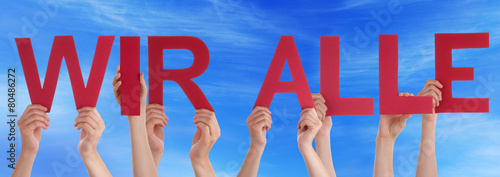People Straight German Word Wir Alle Means Everyone Blue Sky
