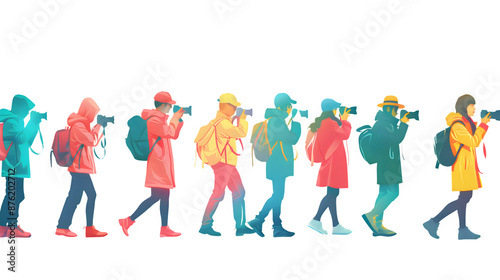 People Taking Photographs on World's Photography Day - Celebration Illustration PNG File, Isolated on White