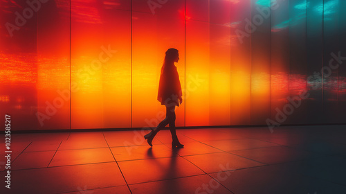 person, walking, front, green, screen, digital, outline, silhouette, glowing, woman, light, colours, dynamic, moving, warm, shape, soft, background, female, abstract, shadow, black, young, beauty, concept, mysterious, white, tunnel, ghost, fashion, night, long, fear, lady, fantasy, horror, architecture, urban, street, building, art, interior, hair, design, adult, darkness, portrait, style
