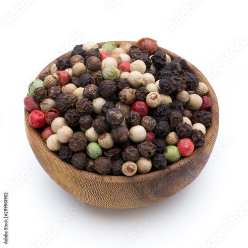 Pepper mix seed on spoon on white background.