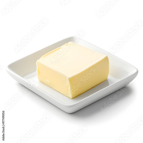 Perfectly Cut Butter Piece on a Clean White Dish