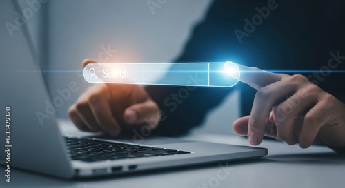 Person Activating Search Bar on Laptop Screen Representing Digital Exploration and Information Access in a Modern Technological Context