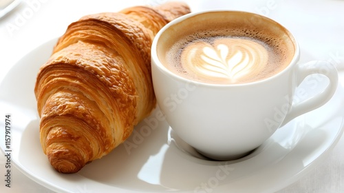 person, enjoying, italian, cappuccino, fresh, croissant, breakfast