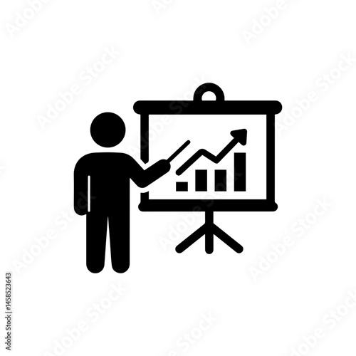 Person Pointing to Upward Graph on Flipchart Icon Filled Design