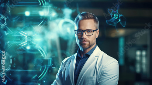 Person. Portrait of Bioengineer on a blurred background in the laboratory