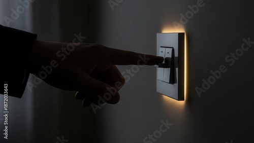 light, switch, person, hand, turning, interior, action, home, electricity, modern, design, shadow, illumination, environment, room, control, technology, contemporary, dark, bright, relaxing, cosy, mood, warmth, lifestyle, awareness, energy, sharpened, gesture, fingertip, comfort, convenience, home decor, interior design, simplicity, functionality, ambient, evening, allure, brightness, home automation, interaction, leisure, dusk, casual attire, stylish, electric, domestic